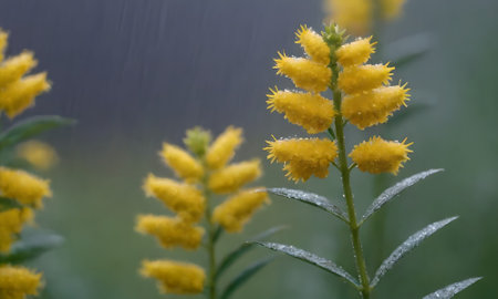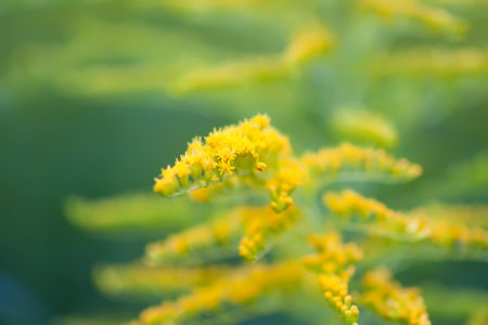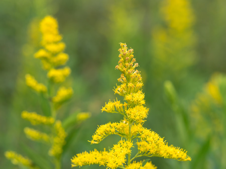 European goldenrod, Solidago virgaurea yellow summer flowers closeup selective focus