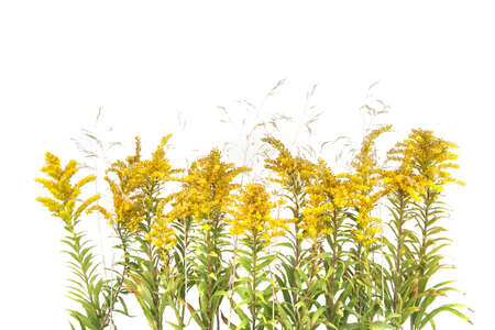 Flowering goldenrod - a medicinal, ornamental and honey plant isolated on a white background