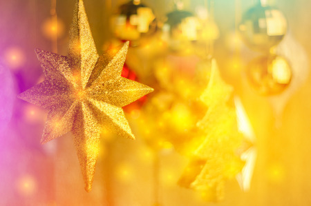 golden christmas star on christmas tree decoration.