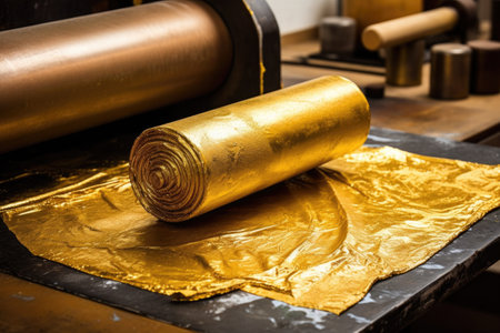 rolled gold foil ready for beating process, created with generative ai