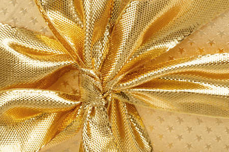 close up detail of golden ribbon on luxury gift