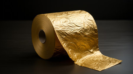 A luxurious roll of golden foil elegantly positioned on a marble surface, ideal for enhancing creative projects, craft activities, and decorative touches in home decor.