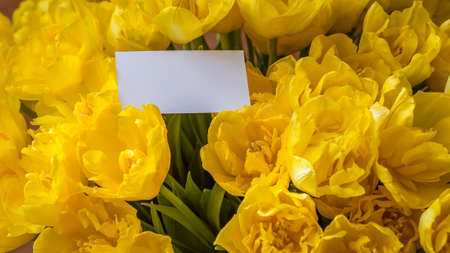Flower vase with yellow tulips. The concept of the holiday birthday, March 8, mothers day, date, Valentines Day