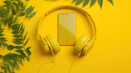 Monochromatic minimalistic yellow background with yellow headphones on it.