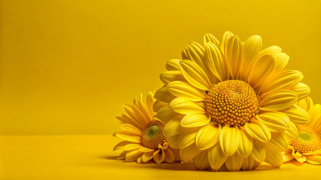 Three yellow daisies on a yellow background.