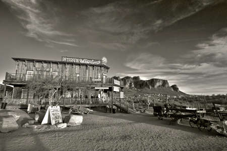 GOLDFIELD GHOST TOWN JANUARY 26th:An old shop with superstition mountain in background on January 26 2013 in Goldfield Ghost town USA