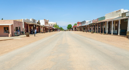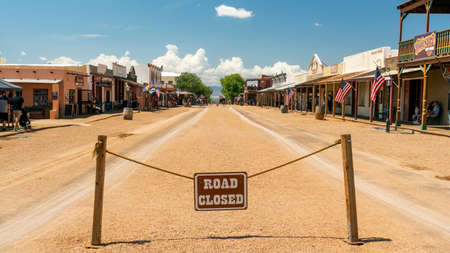 TOMBSTONE, ARIZONA, USA - JULY 12, 2009: Allen Street in Tombstone, Arizona at Sunset. Allen Street is a famous tourist Attraction.
