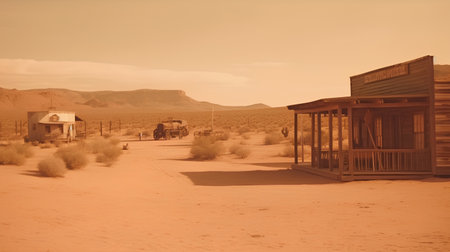 Captured in the heart of the desert, an aged and forgotten house stands as a stark reminder of its former life, A haunted ghost town in the middle of the desert, AI Generated