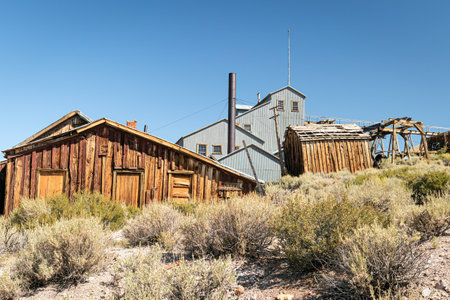 Buildings in the abandoned ghost town of Bodie California. Bodie was a busy, high elevation gold mining town in the Sierra Nevada Mountains in the early 1900s