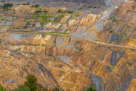 Mining dump with colorful layers of soil excavated from iron ore mining operations