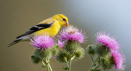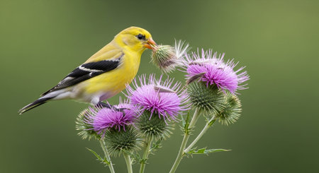 American Goldfinch (Spinus tristis) perched on a thistle