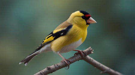 the goldfinch, with its vibrant yellow plumage and striking black cap, perches delicately on a twig, showcasing its intricate details and majestic beauty, highlighting its unique characteristics, such as its conical beak and brown-tipped wings, in a stunning display of nature's splendor. ai generated