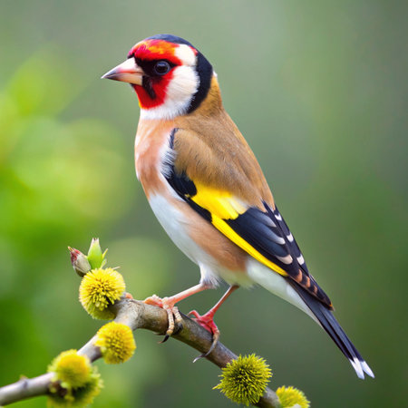 Goldfinch (Carduelis carduelis) perched on a branch