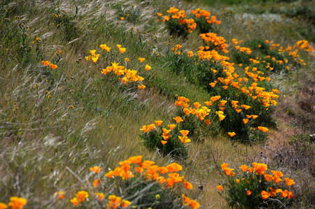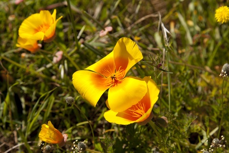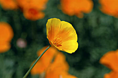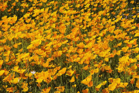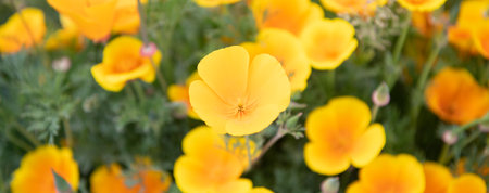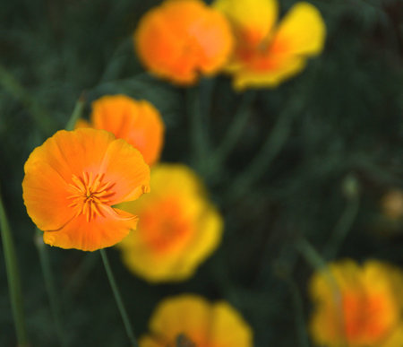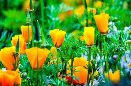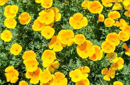Eschscholzia californica, yellow and orange poppy wild flowers, official state flower of California.