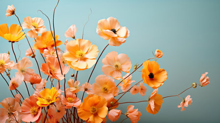 Vibrant orange flowers blooming against a clear blue sky, showcasing natures beauty in a bright and cheerful scene. Floral beauty and outdoor concept.