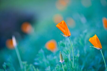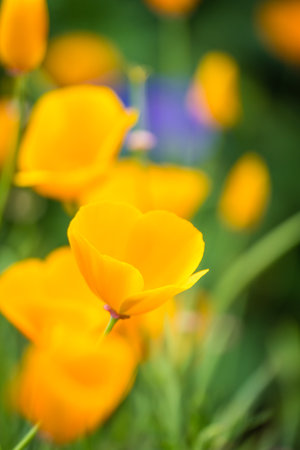 California poppies (Eschscholzia californica) in spring. These brilliant annuals are native to the southern and western states of America.