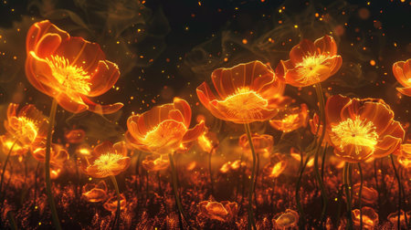 A mesmerizing display of fire flowers lighting up the night sky, filling the air with their enchanting glow
