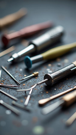 Close up macro shot of goldsmith's tools.