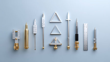 A visually appealing arrangement of precision tools and measuring devices on a blue background, perfect for highlighting drafting and measurement techniques in design and engineering.