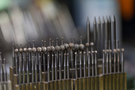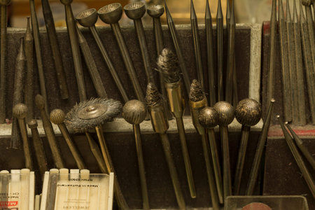 A lot of dremel bits at jewelers workplace