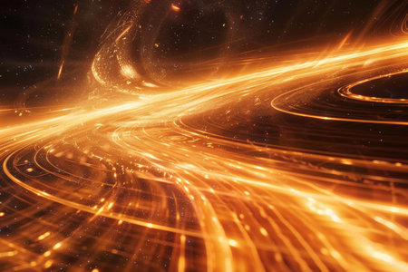 Abstract showing abstract close-up of bright golden light streaks and swirling patterns creating a luminous and energetic visual effect with a bokeh background...