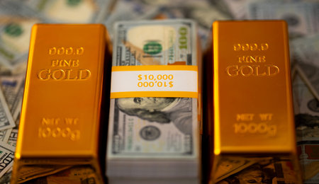 Dollar and gold, financial assets, wealth and financial success, business and investment