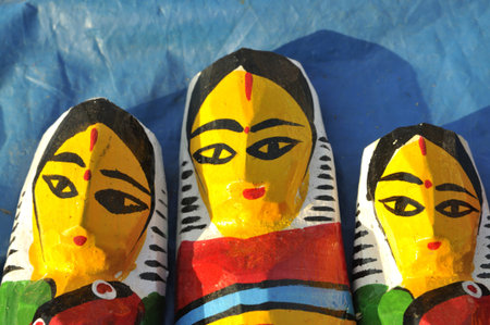 A vibrant array of wooden carved figures showcasing intricate designs and expressions. Perfect representation of artisan craftsmanship and cultural heritage.
