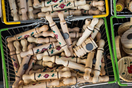 Wooden baskets and caskets on sale in street