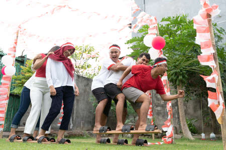 one group of participants could not compete in a traditional bakiak competition at the Indonesian Independence Day celebrations