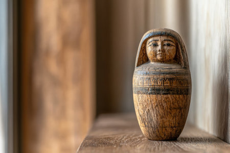 An Egyptian canopic jar on a wooden surface.
