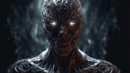A dark creature with glowing eyes is shown in a dark room.generative ai