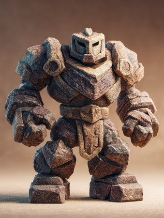 Sturdy stone sculpture of a warrior figure, showcasing intricate details and textures. Perfect for artistic inspiration, displays, or collectibles in fantasy themes.