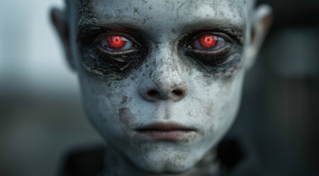Haunting portrait of a mysterious figure with glowing red eyes
