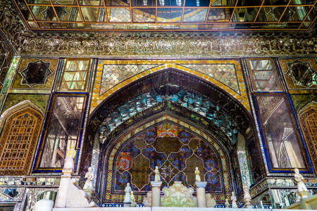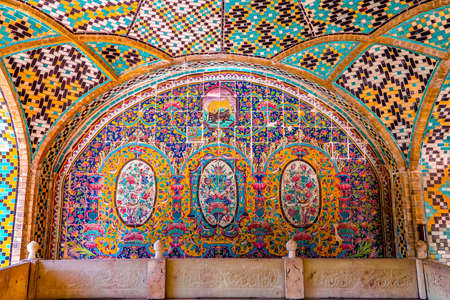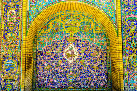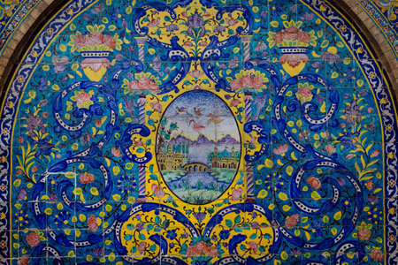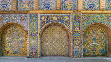 Tehran, Iran - May 2019: Colorful mosaic painting and tiles of Golestan palace, a UNESCO world heritage site