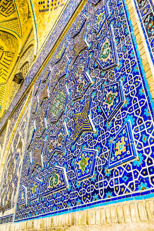 Detail of the mosaic on the wall of the mosque in Bukhara, Uzbekistan
