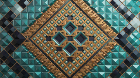 3d render of abstract geometric background with rhombus and square tiles