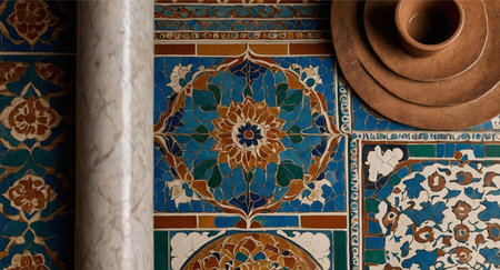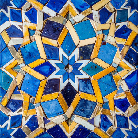 Abstract Islamic mosaic with intricate patterns and geometric symmetry.