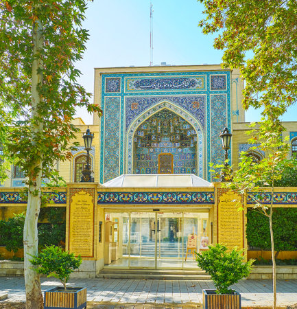 TEHRAN, IRAN - OCTOBER 25, 2017: The entrance to Malek museum and library, located in traditional Persian mansion in Bagh-e Melli cultural center