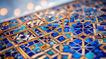 A close-up view reveals the intricate craftsmanship of an ancient Islamic mosaic.
