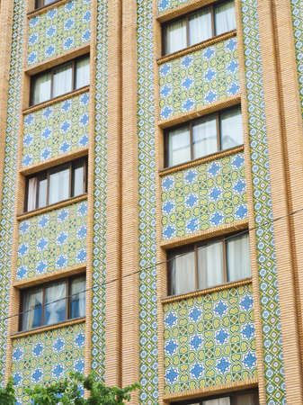 Mosaic tiles decoration on building facade in Tehran, Iran