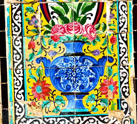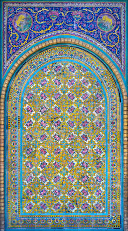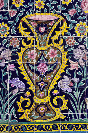 Vintage colorful mosaic ceramic tile wall of the royal Golestan Palace in Tehran, Iran, which is a UNESCO World Heritage site