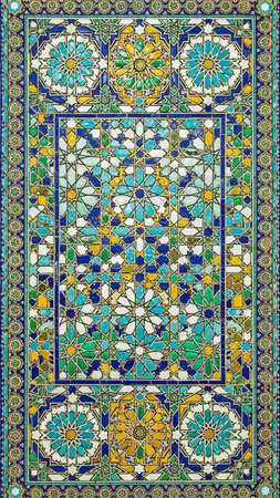 Detail of the mosaic on the wall of the Hassan II Mosque in Casablanca, Morocco