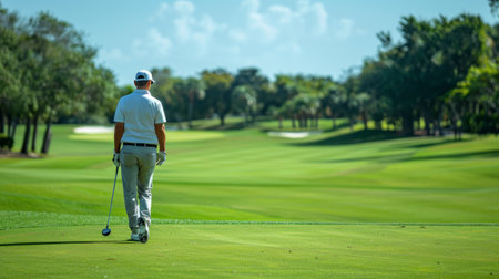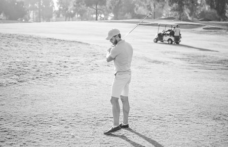 summer activity. professional sport outdoor. male golf player on professional golf course.