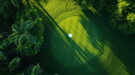 Aerial view of a beautiful golf course in the morning, sunrise