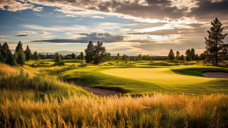 Green gold course sunset grass. vacation sport. Generate AI
