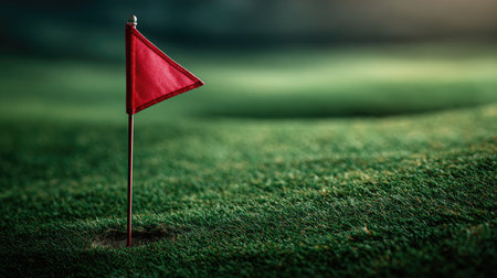 This image features a bright red flag positioned on a lush green golf course with a soft-focus background, embodying the spirit of outdoor recreation and sport.