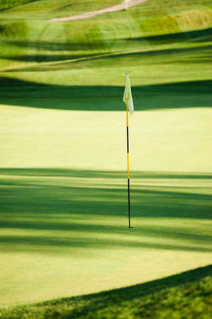 A green flag on a golf green