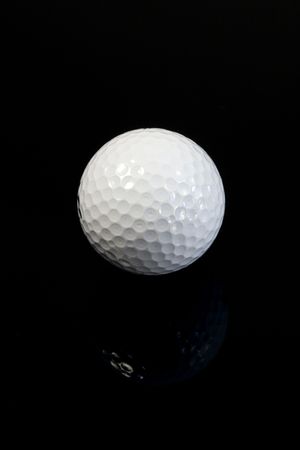 High contrast studio shot of golf ball isolated on black background with dramatic light