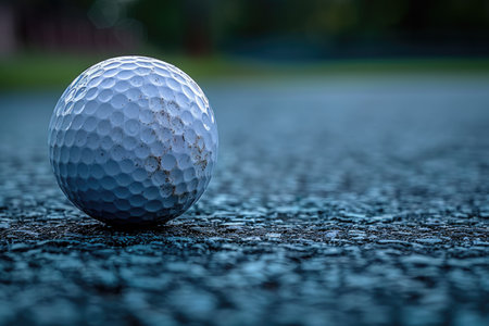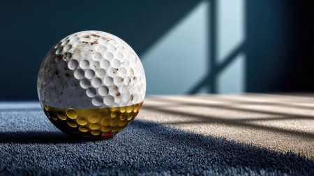 A stunning close-up of a golf ball resting on a soft surface, showcasing intricate texture and detail, enhanced by dramatic lighting and shadows. Perfect for sports-themed content.