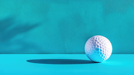 A single white golf ball rests on a vibrant turquoise surface, casting a soft shadow. This artistic shot captures the essence of sports and leisure, inviting a dynamic and playful feel to any design project.
